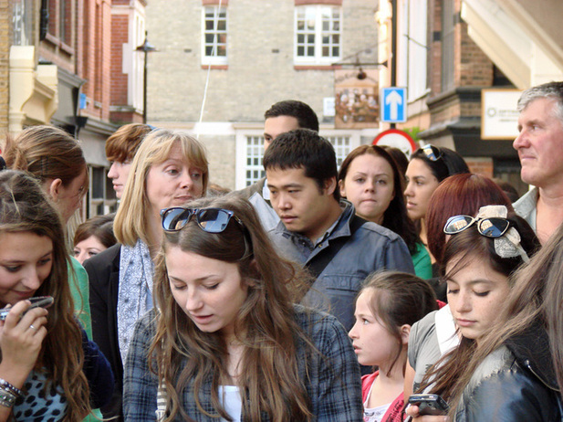 Измотанные ожиданием. Спросила у мадам в начале очереди — у нее ушло чуть больше двух часов.